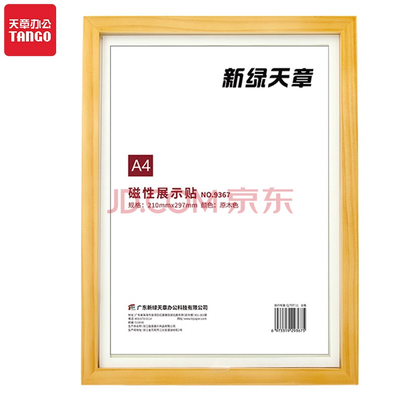 商品相册:天章办公(TANGO)磁性展示贴A4磁力贴 营业执照保护套 公告栏教室 营业执照正本框 磁性框通知展示栏荣誉墙第1张/共6