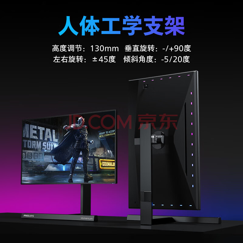商品相册:飞利浦27英寸NanoIPS出厂校准4K144Hz 1ms环景光HDR600 TypeC HDMI2.1电竞显示器DTS音效红点奖279M1RVE第