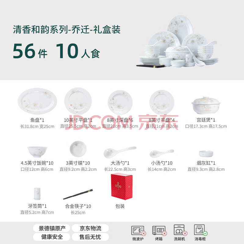商品相册:景德镇(jdz)陶瓷餐具套装轻奢高级感碗碟整套家用乔迁新年礼品送领导清香和韵第