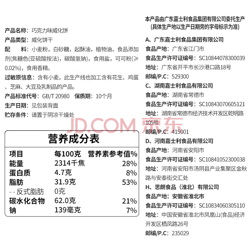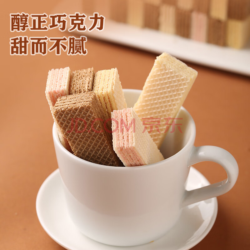 商品相册:嘉士利威化夹心饼干 巧克力味389g+65g/袋 休闲零食办公室早餐下午茶点第