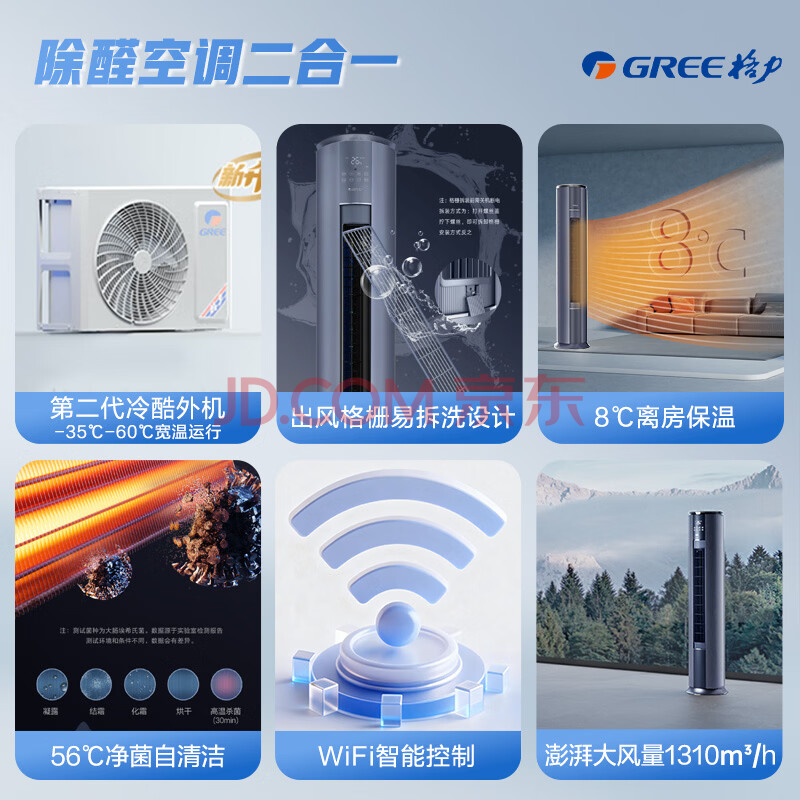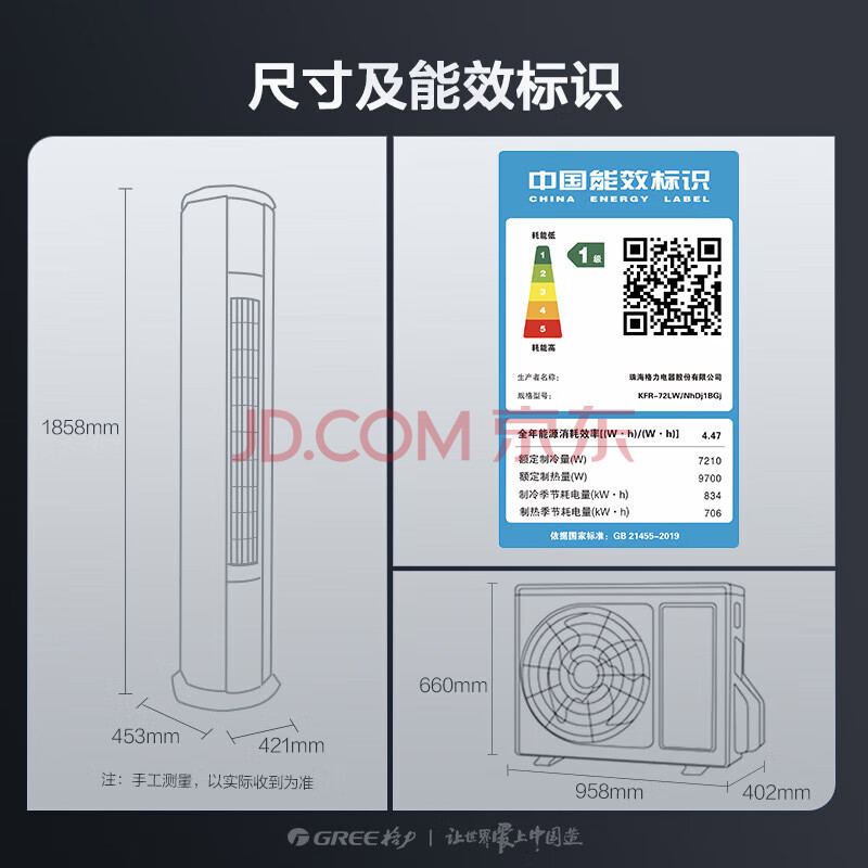 商品相册:格力空调 京淳 3匹 新一级能效变频 高效除甲醛 健康风客厅纯铜管省电柜机 KFR-72LW/NhDj1BGj第1张/共8