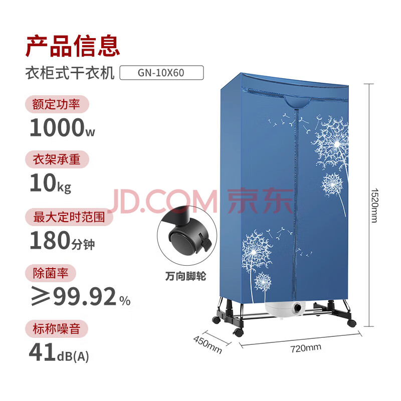 商品相册:格力(GREE)【万向脚轮灵活移动】干衣机烘干机家用烘衣服烘衣衣柜脱水机高温除菌螨GN-10X60第