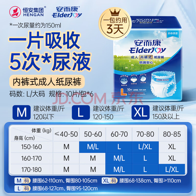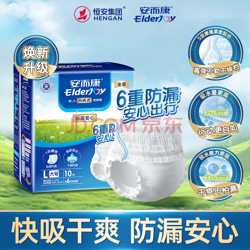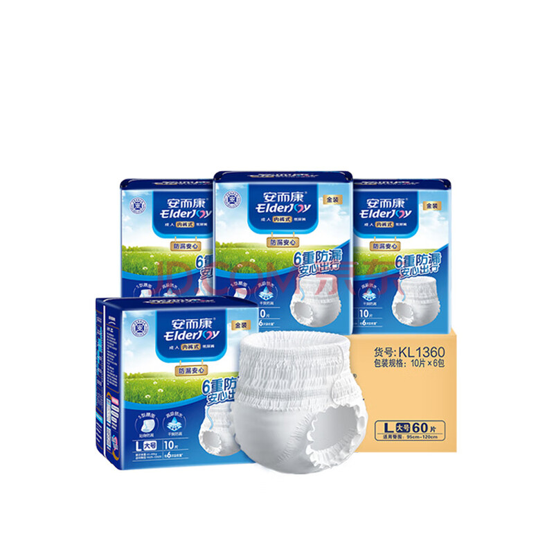 商品相册:安而康(Elderjoy)防漏安心成人拉拉裤L60片臀围95-120cm内裤式成人纸尿裤出行安心第1张/共7