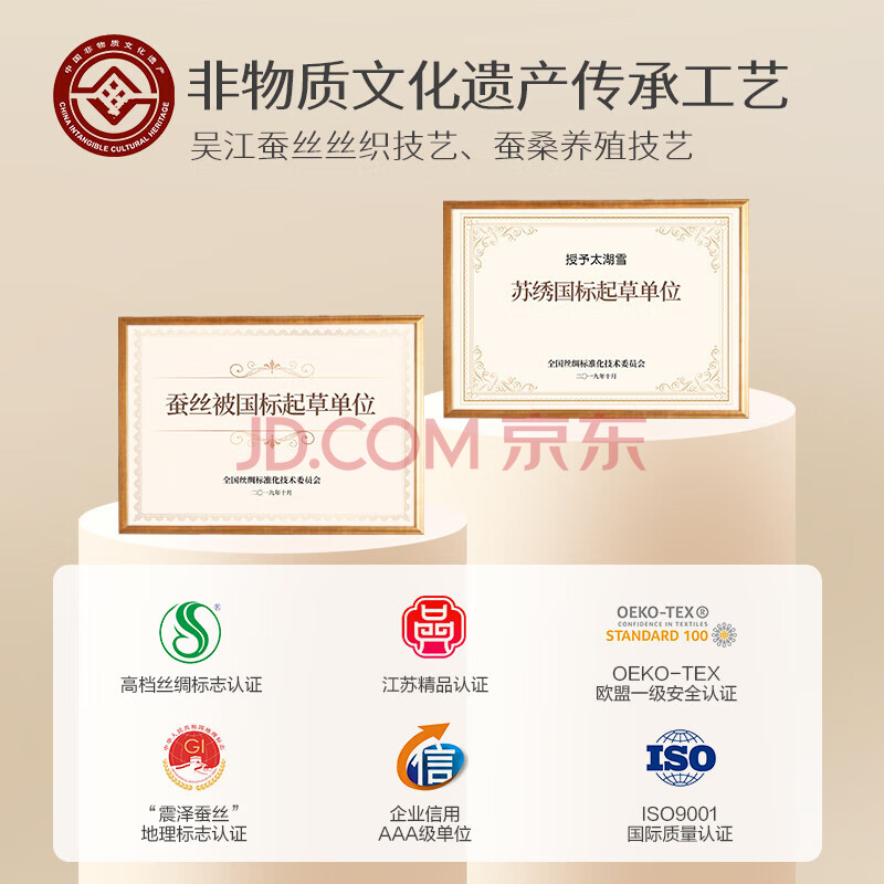商品相册:太湖雪 100%桑蚕丝冬被 子母四季被 丝重1+3斤 全棉防螨220*240cm粉第