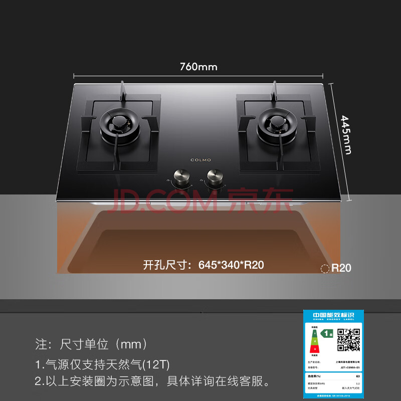商品相册:COLMO家用燃气灶天然气EF2 家电5.2kW猛火灶双灶 带熄火保护一级能效尺寸可调节JZT-CSN50-E5第