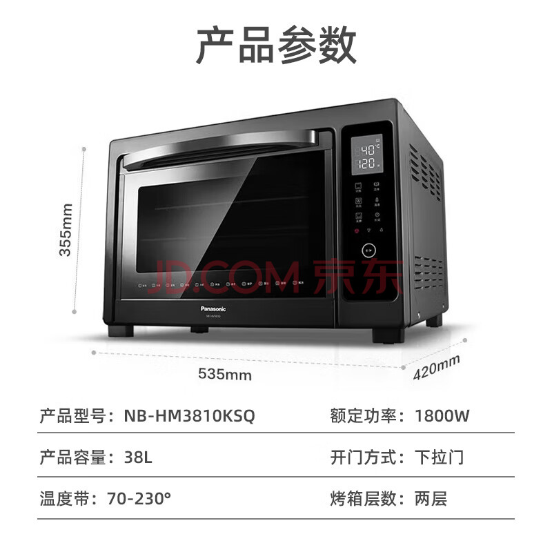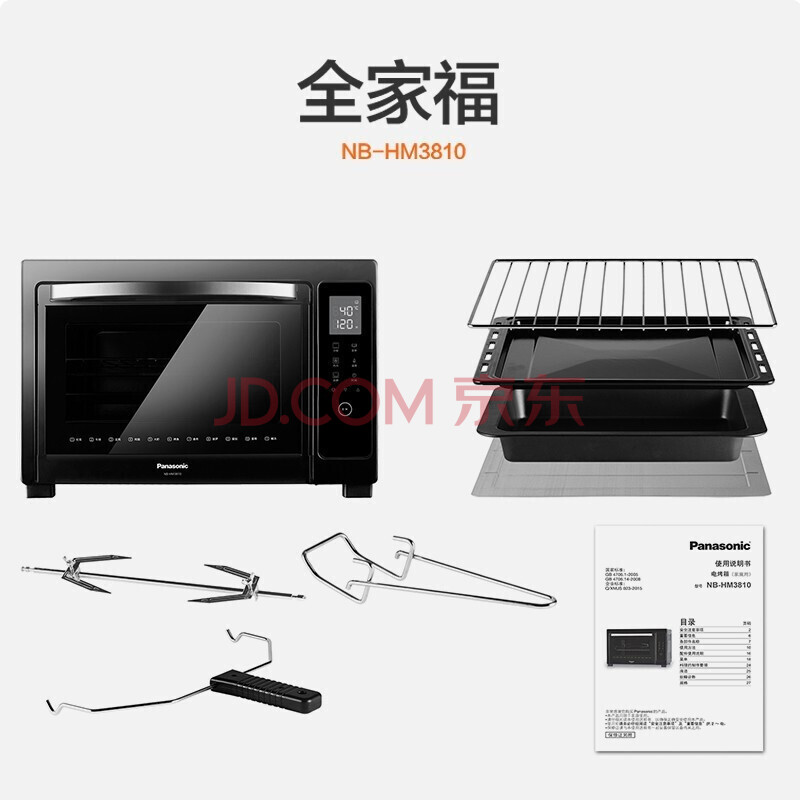 商品相册:松下(Panasonic)上下独立温控自动预热易洁内胆立体旋转烧烤家用电烤箱 38L容量NB-HM3810第