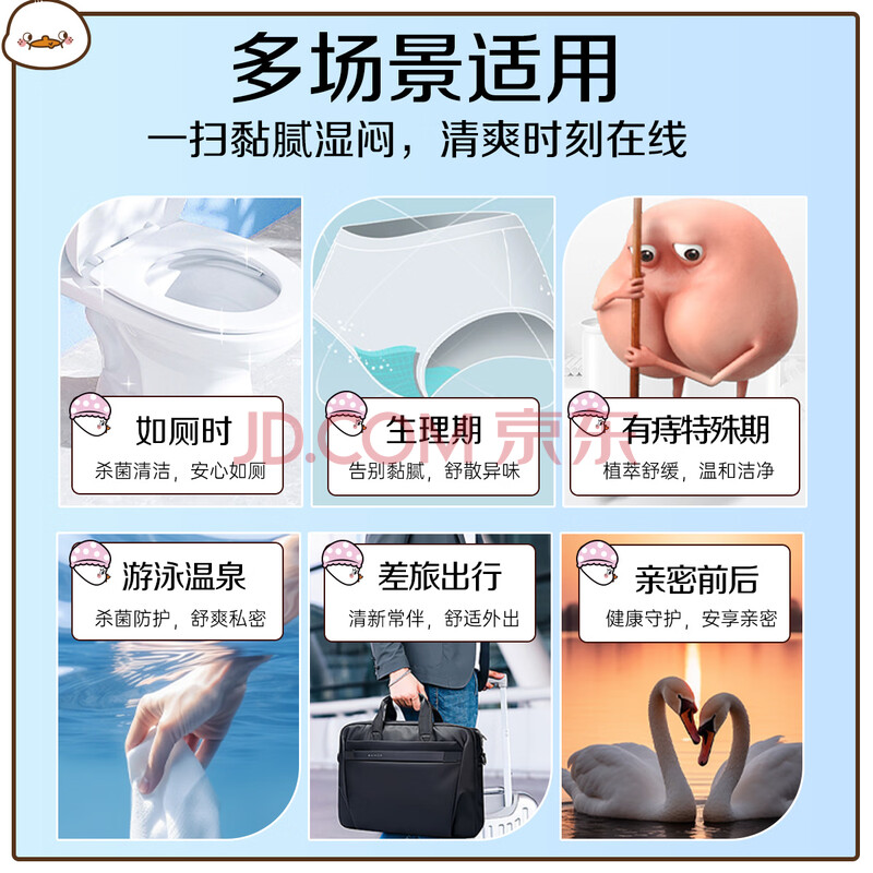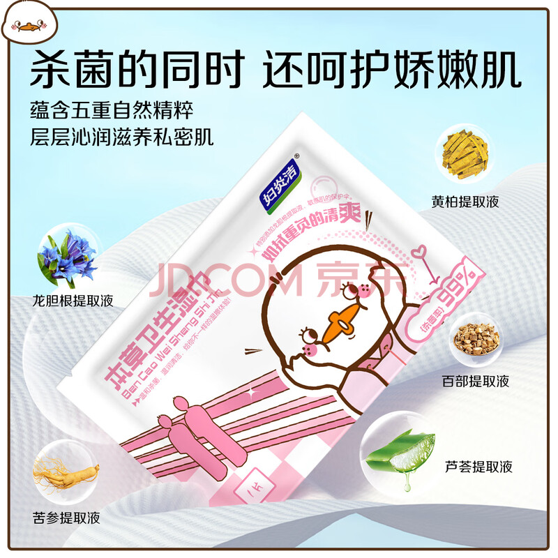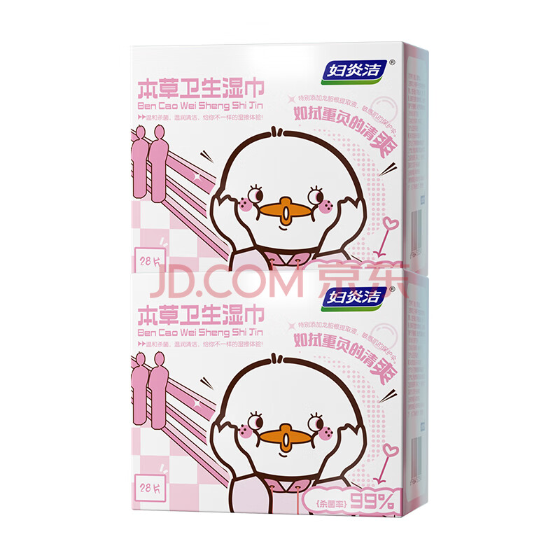 商品相册:妇炎洁 抑菌免洗本草卫生湿巾 28片*3盒 私护私处清洁姨妈期湿厕纸便携第1张/共6