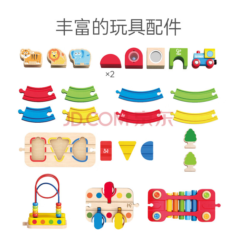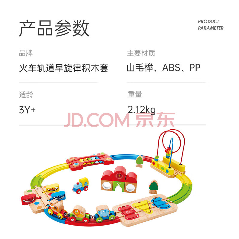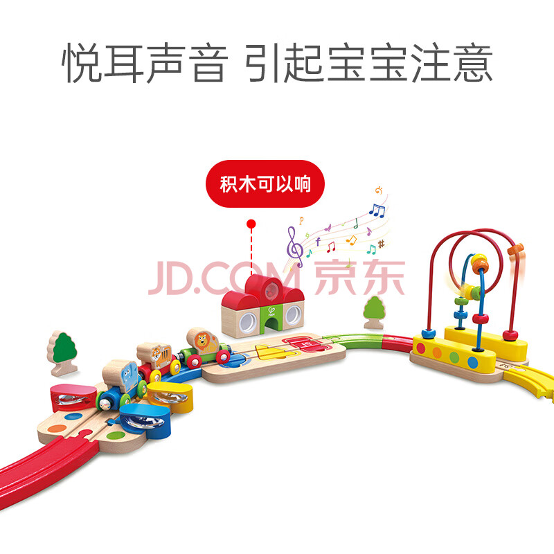 商品相册:Hape儿童轨道玩具木质拼插diy多功能早旋律积木套3岁礼物E3826第