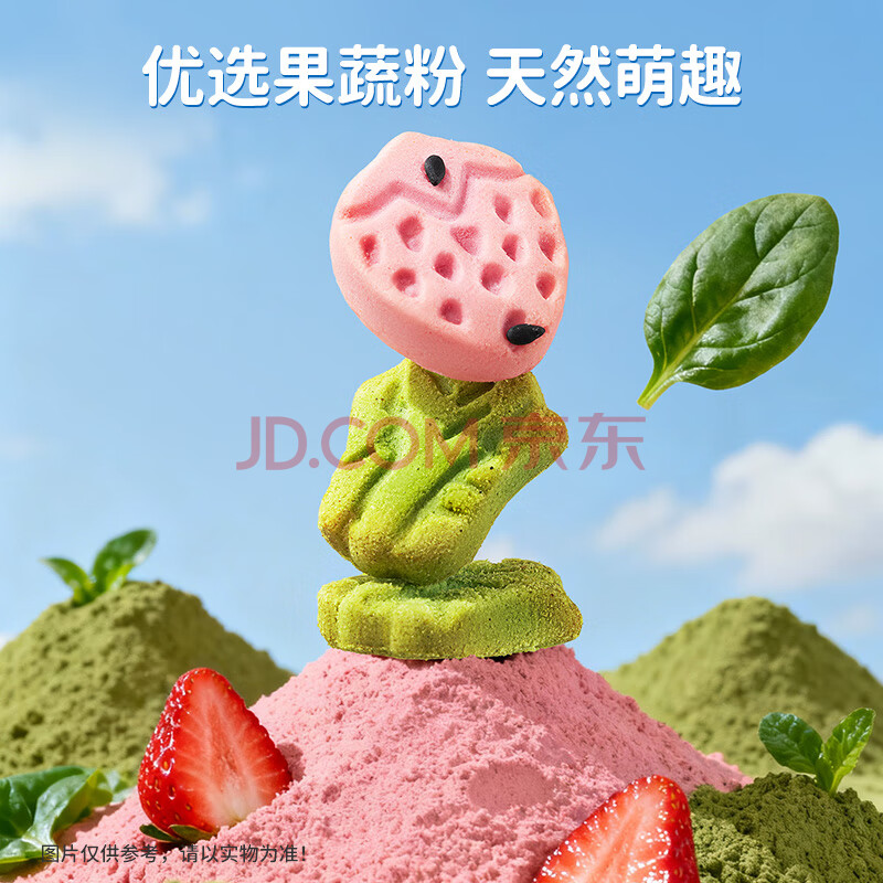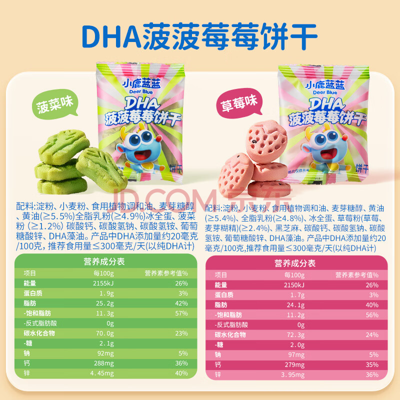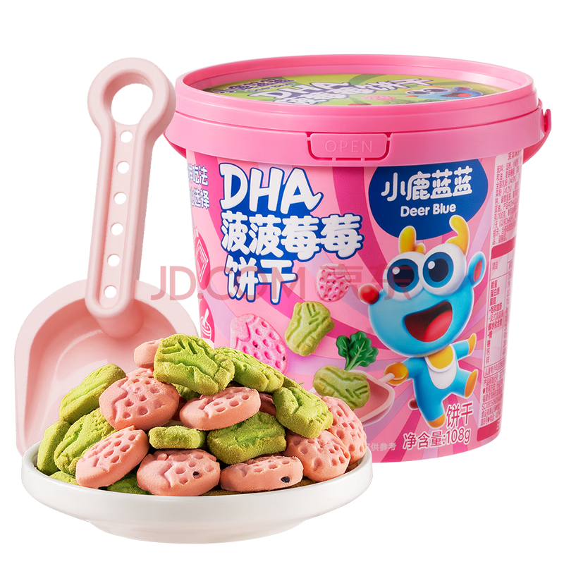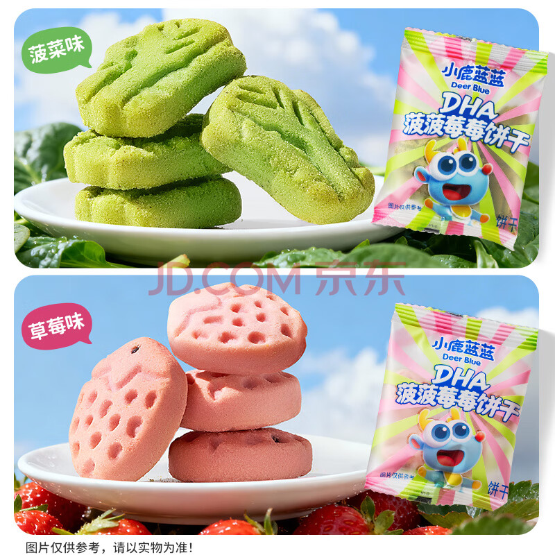 商品相册:小鹿蓝蓝_菠菠莓莓宝宝饼干 儿童零食菠菜草莓卡通饼干 108g第1张/共8