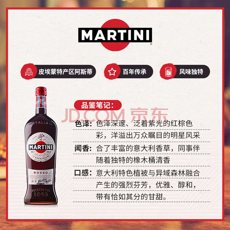 商品相册:马天尼(Martini)洋酒 意大利 红威末酒 甜型气泡果酒 1L 送礼第1张/共7