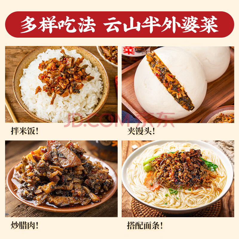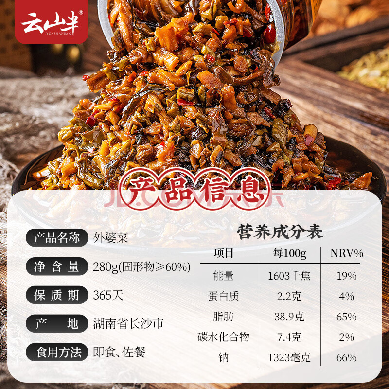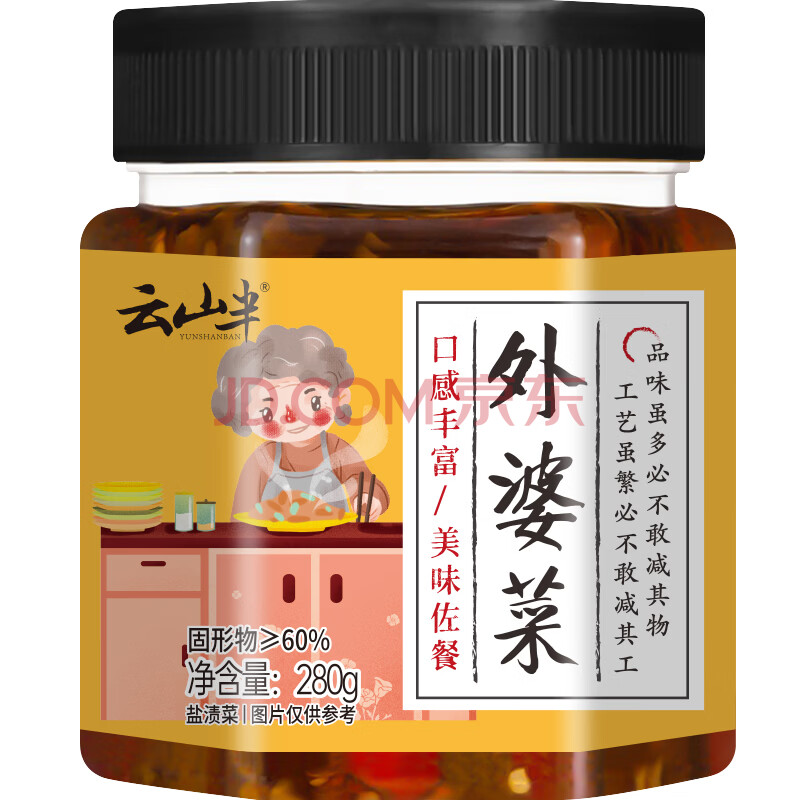 商品相册:云山半外婆菜280g 下饭菜湖南特产香辣酱菜咸菜微辣瓶装即食下饭第