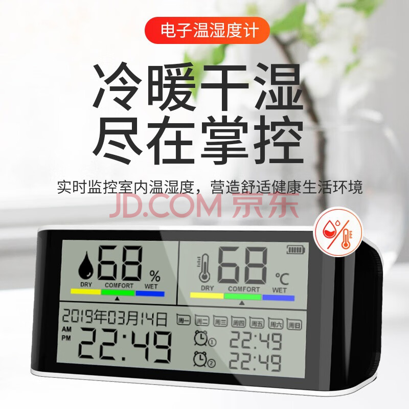 商品相册:Dienmern电子时钟温湿度计充电款 家用室内高精度壁挂式室温计闹钟电子钟第