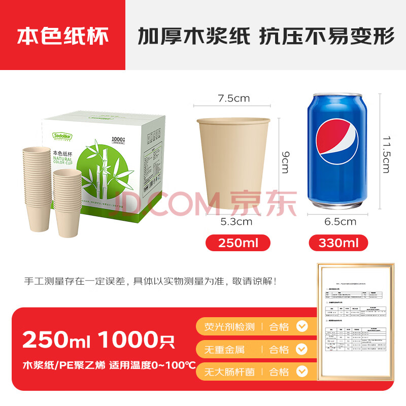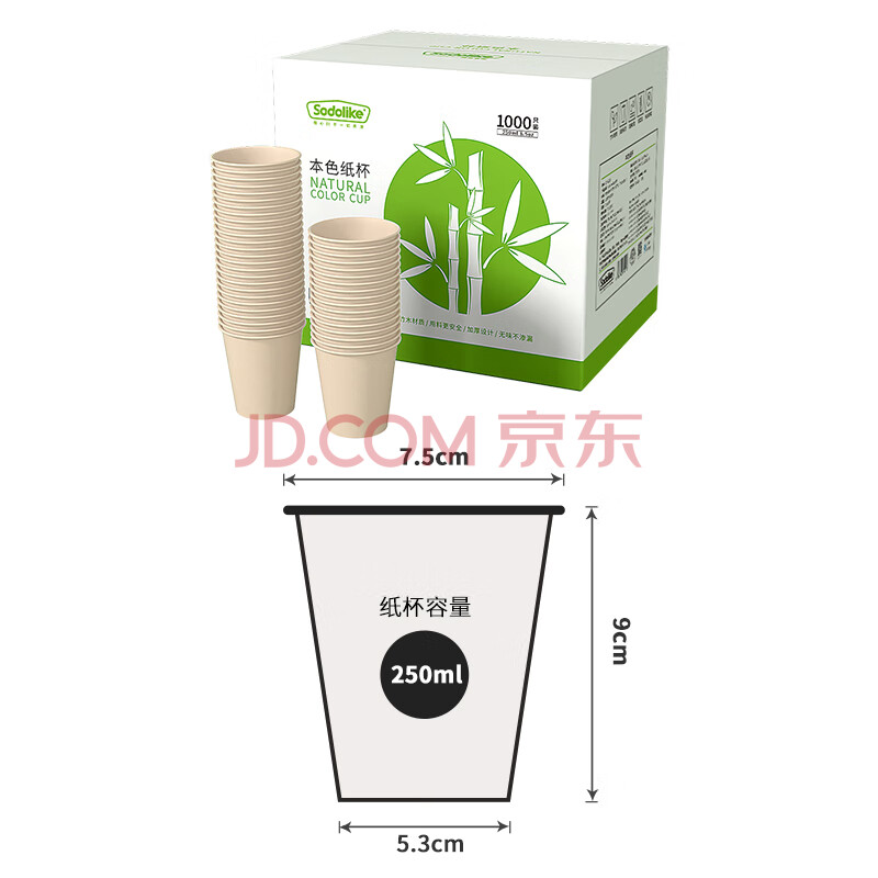 商品相册:Sodolike尚岛 一次性纸杯250ml加厚纸杯整箱1000只装原木本色杯子办公商务第