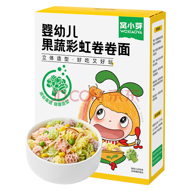 商品相册:窝小芽 婴幼儿卷卷面25g*6包/盒 宝宝果蔬辅食面扭扭面Q弹面条钙铁锌第