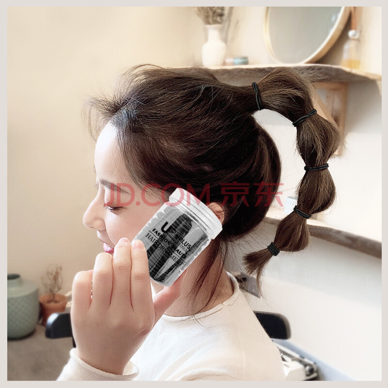 商品相册:优家(UPLUS)皮筋头绳【100根】发绳发圈高弹力橡皮筋扎头发发饰皮套黑色第