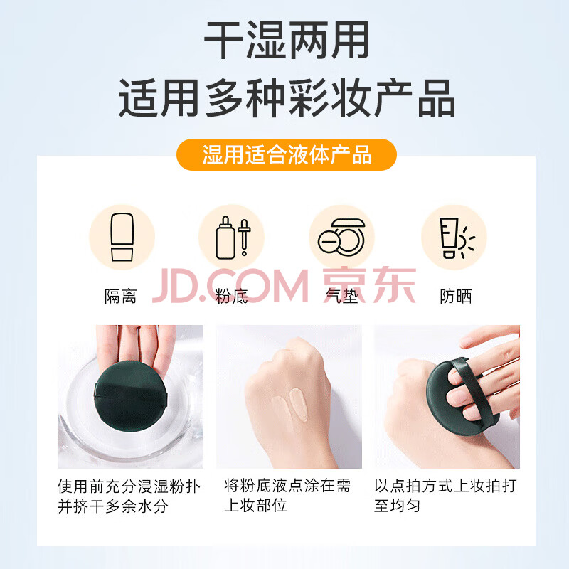 商品相册:美肤语蛋黄派双面气垫粉扑3个装干湿两用粉扑粉底液专用不易吃粉MF8914第