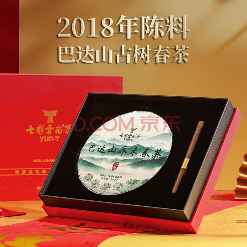 商品相册:七彩雲南普洱茶生茶 2018年巴达山陈料357g 茶叶礼盒 礼品 送长辈领导第