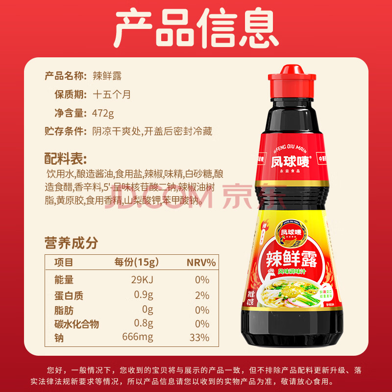 商品相册:凤球唛辣鲜露472g 凉拌菜辣酱油海鲜捞汁小龙虾调味料第