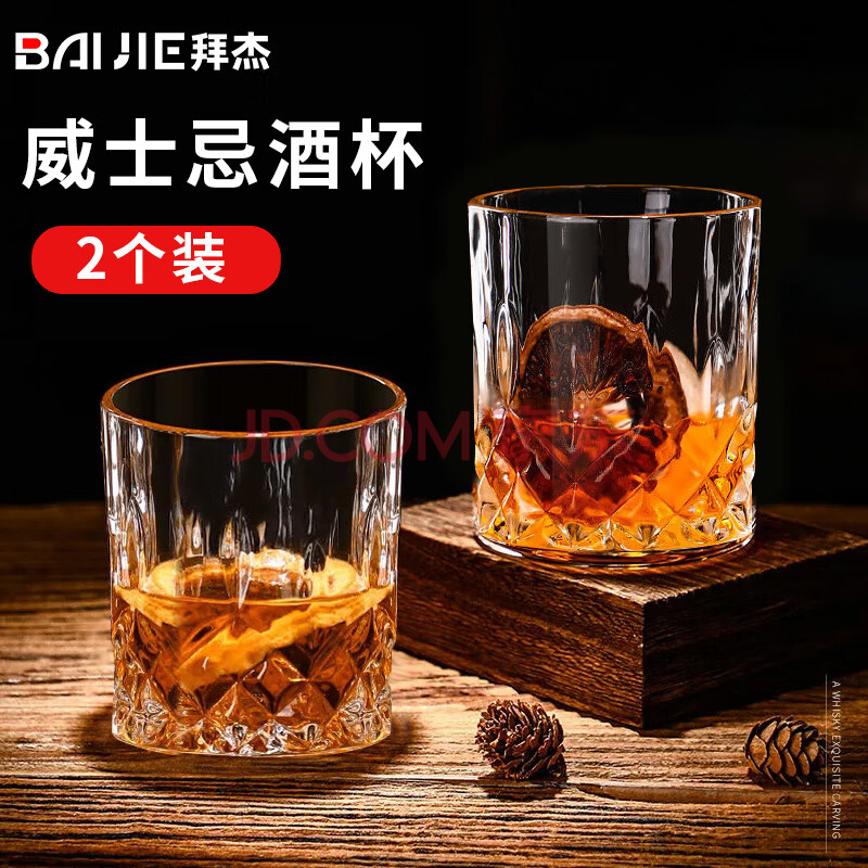 商品相册:拜杰玻璃威士忌酒杯 欧式雕花烈酒杯洋酒杯家用水杯玻璃杯套装 2只装第