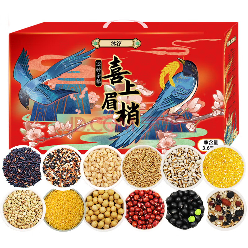 商品相册:沐谷喜上眉梢12种杂粮礼盒共7.2斤 福气盈门三八礼盒团购员工礼品第1张/共7