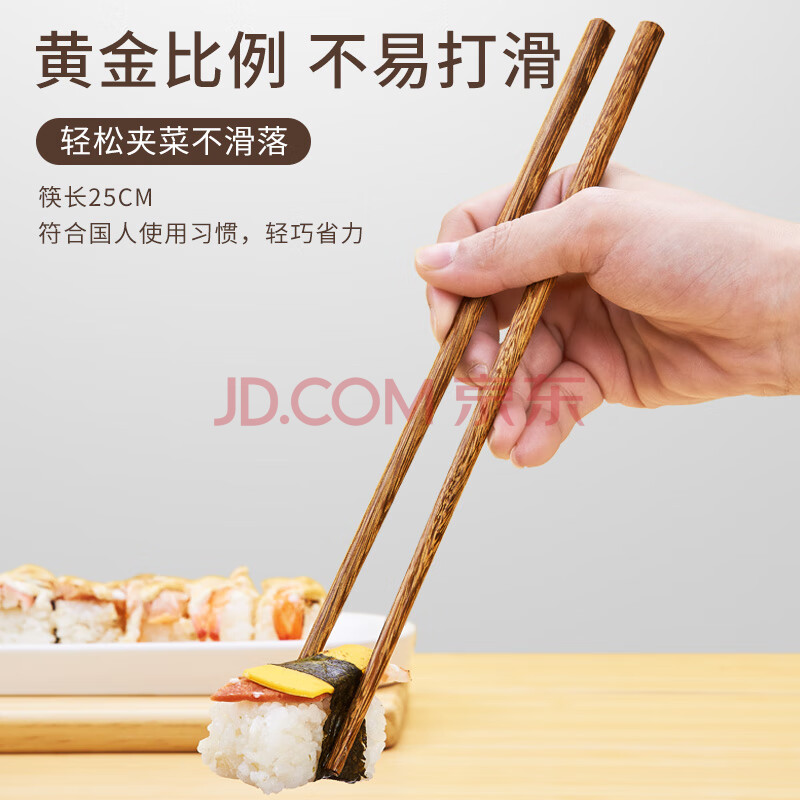 商品相册:唐宗筷 鸡翅木筷子10双装 家用实木 无漆无蜡防滑筷子原木色C6258第