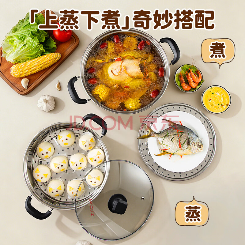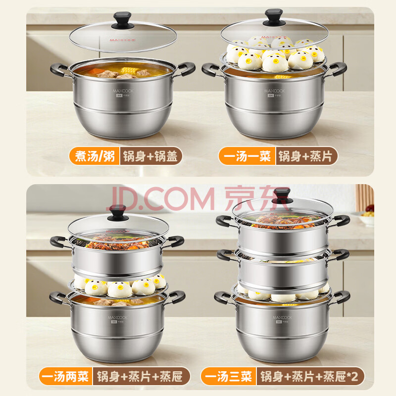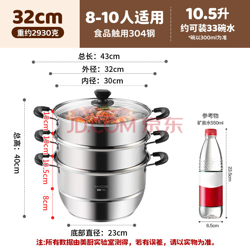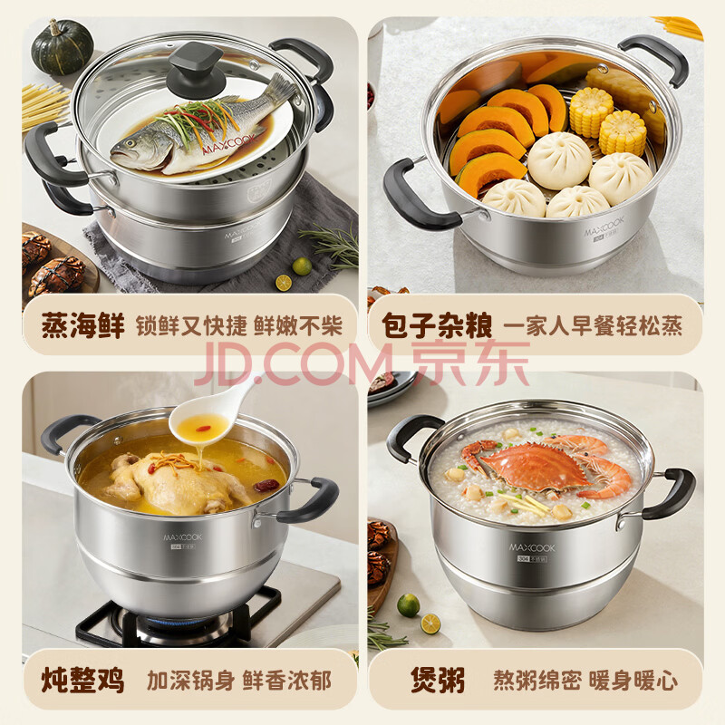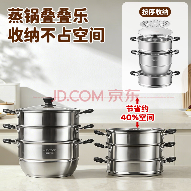 商品相册:美厨(MAXCOOK)304不锈钢蒸锅32CM 三层复底 燃气炉电磁炉通用第