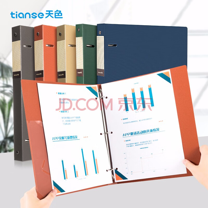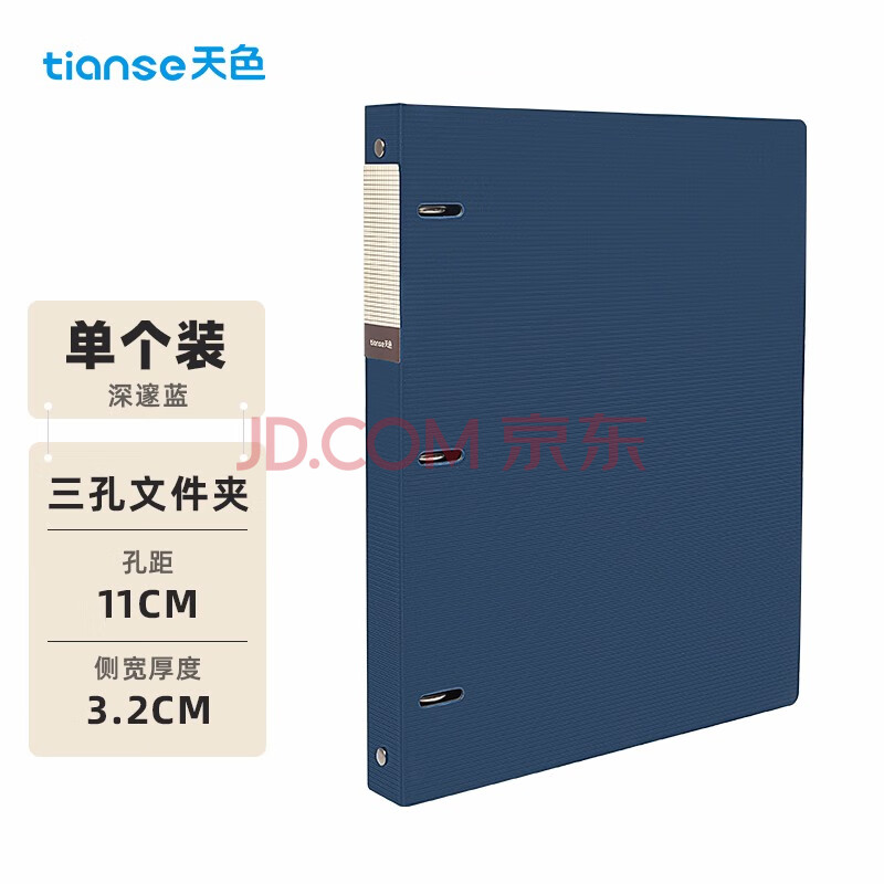 商品相册:天色三孔文件夹打孔a4活页夹插页资料册多功能办公室收纳神器 彩色穿孔大容量加厚强力夹TS-1620深邃蓝第