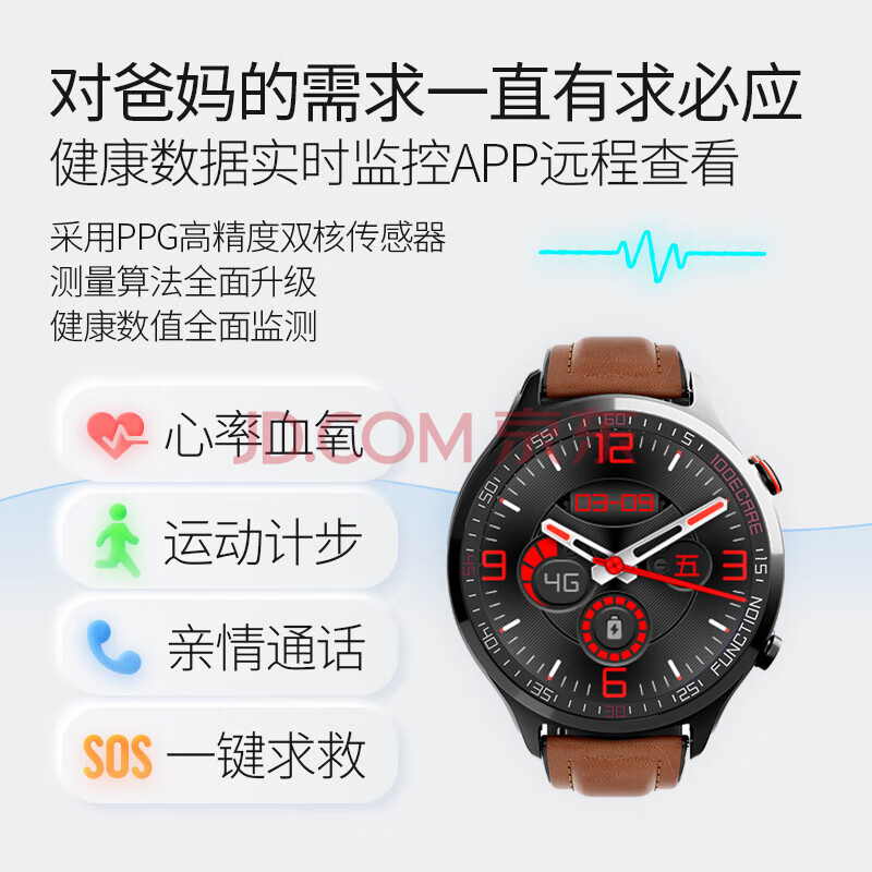 商品相册:爱牵挂X8care健康版老人智能手表4G三网通电话血压血氧心率睡眠运动计步APP健康监测XFQ第