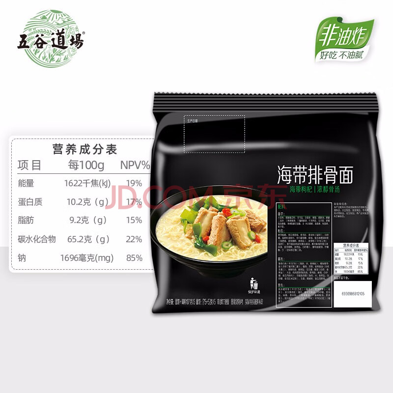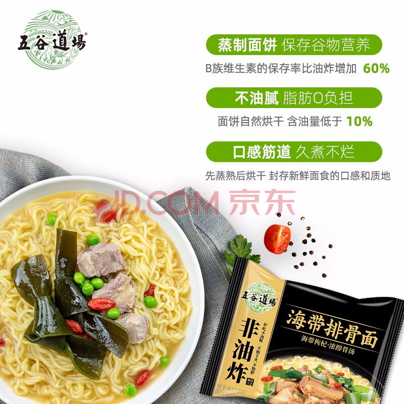 商品相册:五谷道場非油炸方便面 海带排骨面五连包107gx5袋装 泡面 休闲零食第