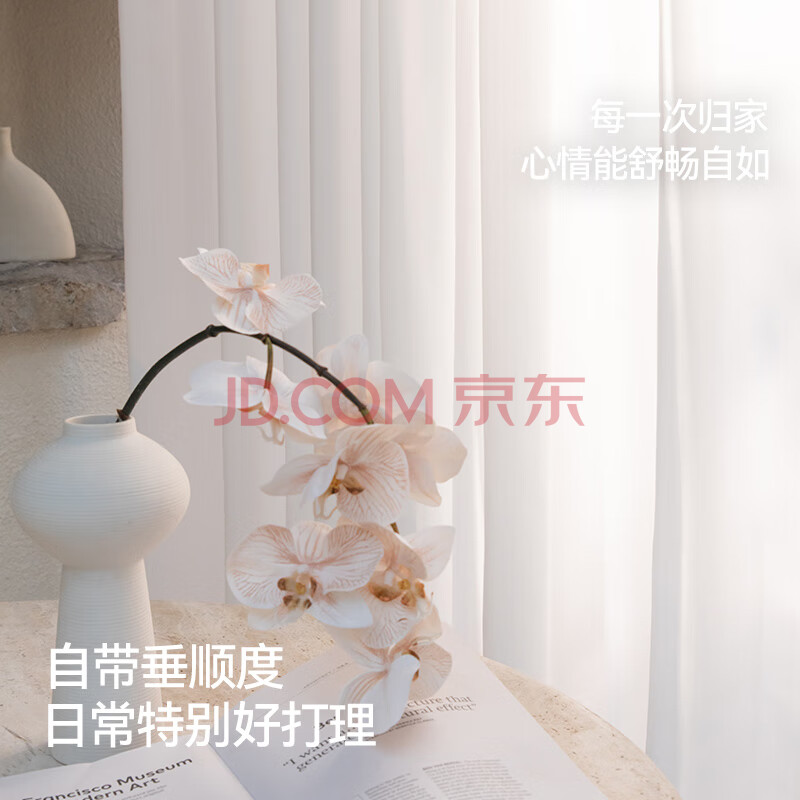 商品相册:金蝉窗帘家用遮光窗纱透光不透人客厅卧室纱帘百搭白纱挂钩式 300*270第