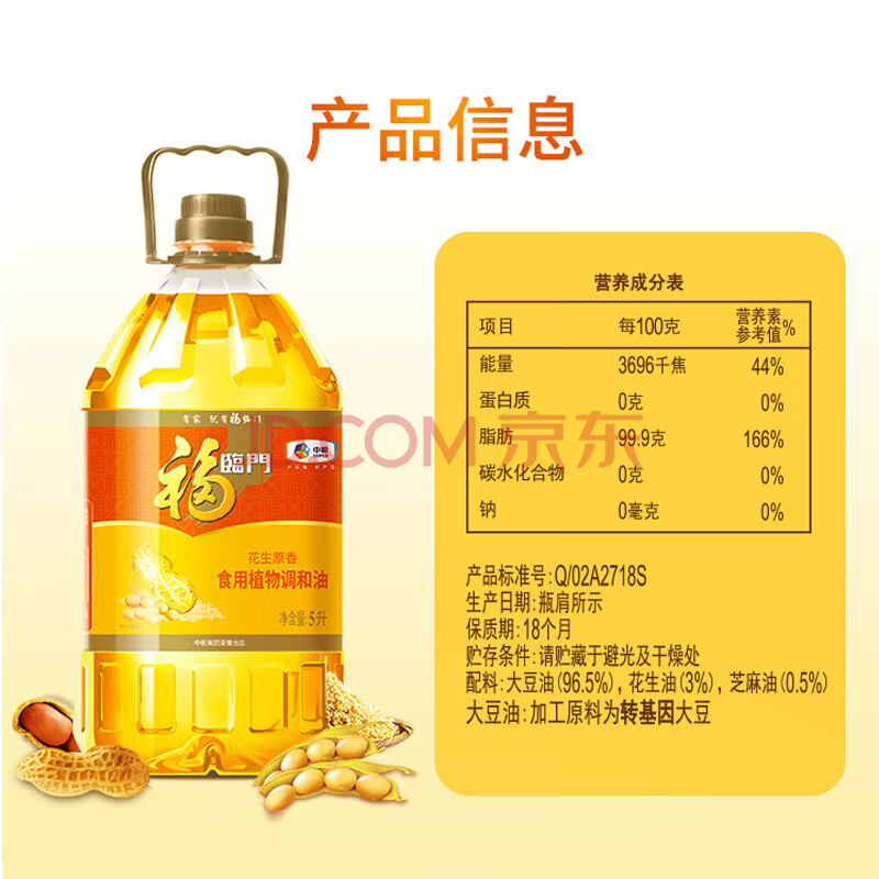 商品相册:福临门 食用油 花生原香食用植物调和油5L 中粮出品新老包装随机发第