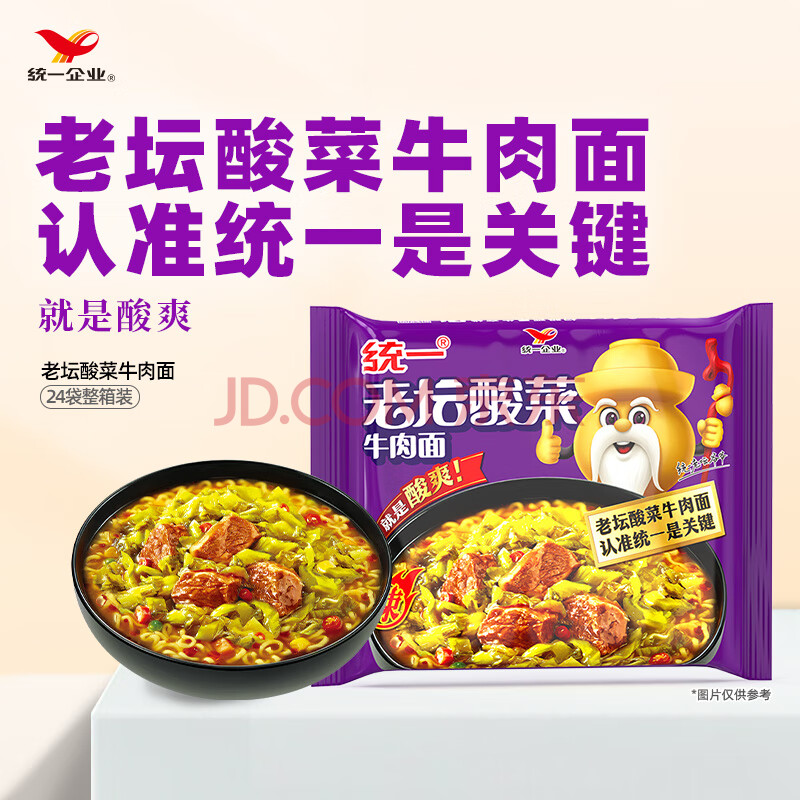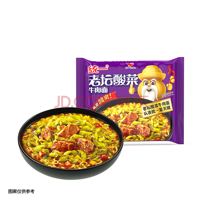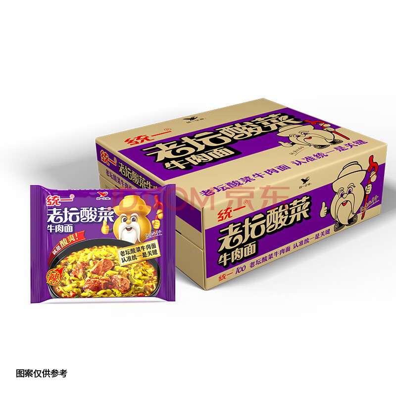 商品相册:统一老坛酸菜牛肉面 121g*24袋 整箱装 方便面泡面 夜宵零食第