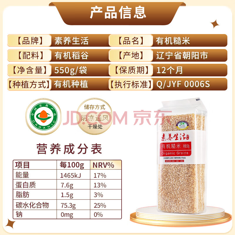 商品相册:素养生活有机糙米1.1斤 含胚芽 糙米饭 纯糙米 糙大米 粗粮米 五谷杂粮第1张/共7