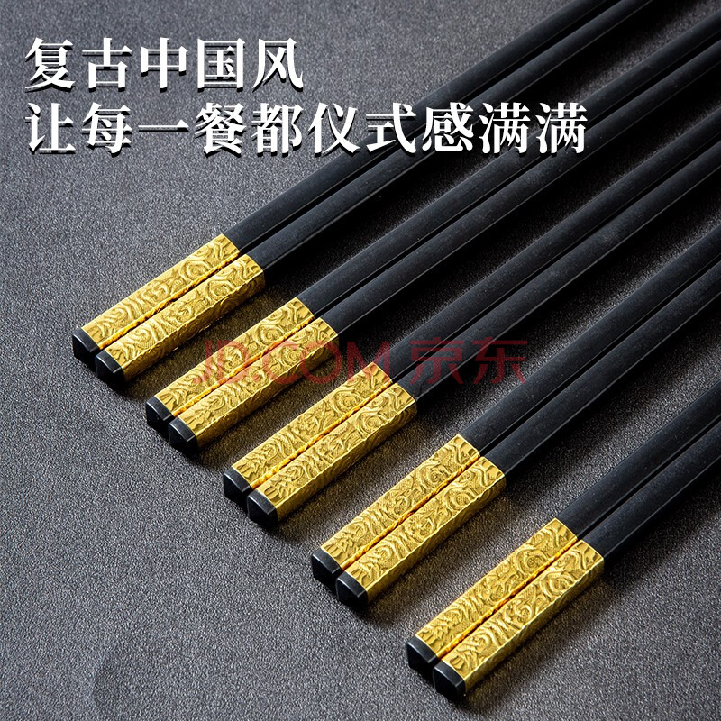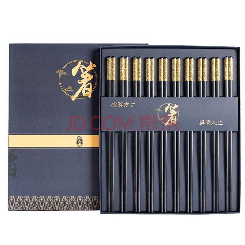商品相册:拾画合金筷礼盒筷 不锈不发霉27cm合金筷子10双装餐具套装 金碧辉映款第1张/共8