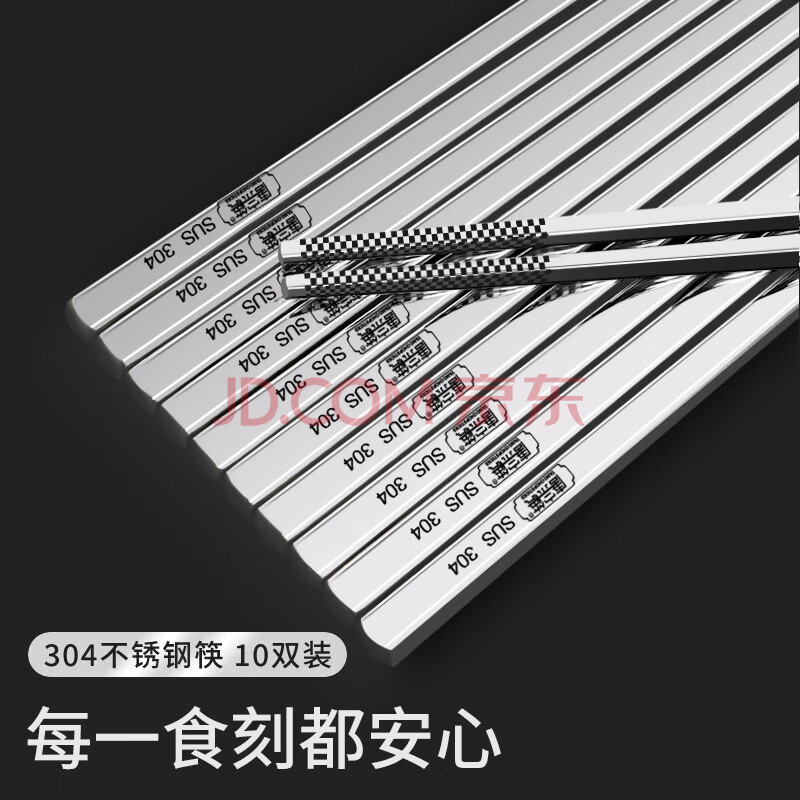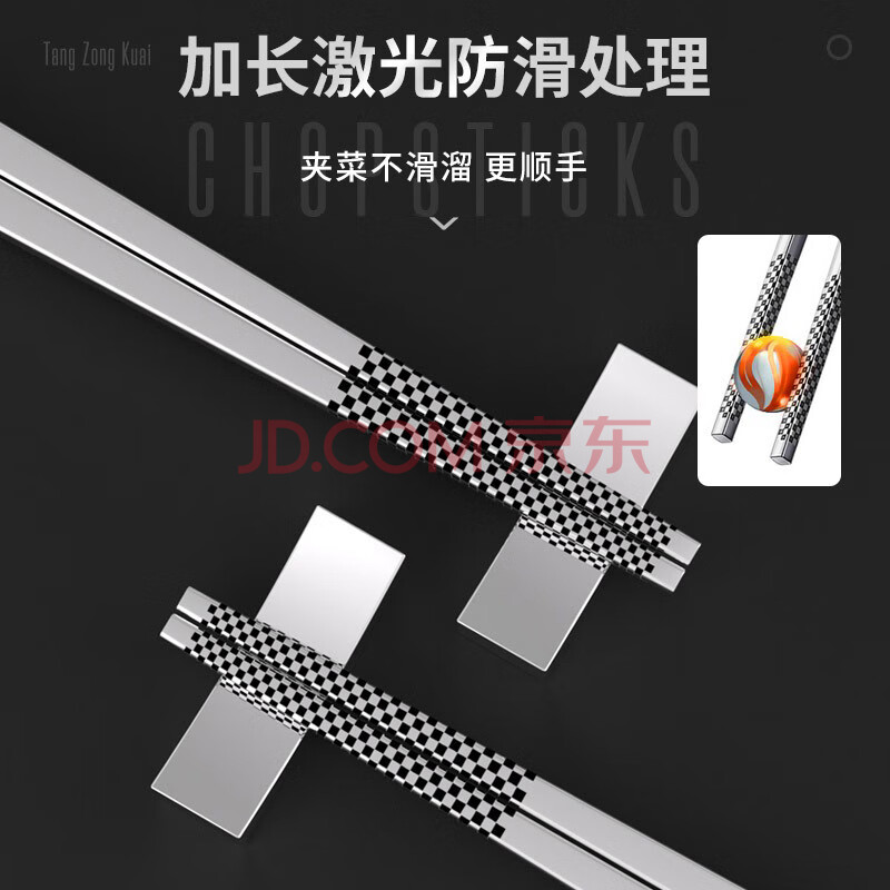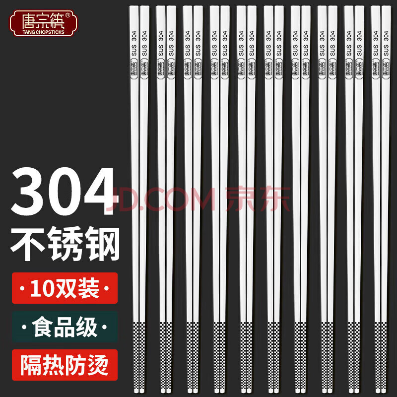 商品相册:唐宗筷 304不锈钢筷子-方形刻字10双装 家用商用酒店用 防滑防烫第
