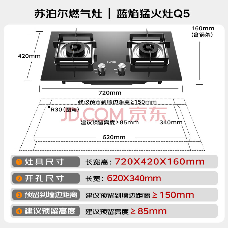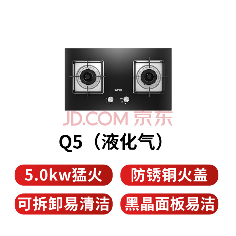 商品相册:苏泊尔(SUPOR)燃气灶煤气灶具双灶5.0KW大火力一级能效台式嵌入式钢化玻璃面板全进风液化气Q5第