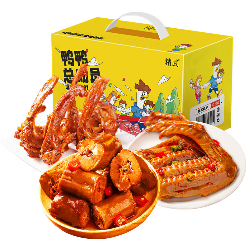 商品相册:精武鸭脖零食大礼包540g休闲礼盒节日送礼办公室锁骨鸭翅卤味武汉风味第