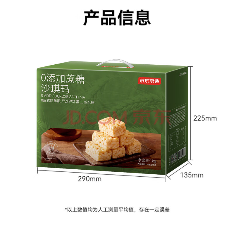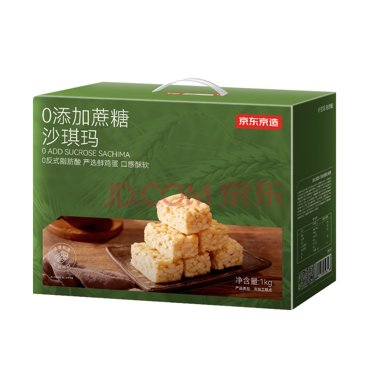 商品相册:京东京造0蔗糖沙琪玛1000g零食休闲萨其马早餐糕点心节日送礼年货礼盒团购第