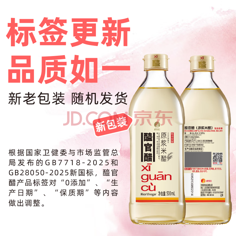 商品相册:醯官原浆米醋4.5度500ml 纯大米酿造食醋 欣和出品第