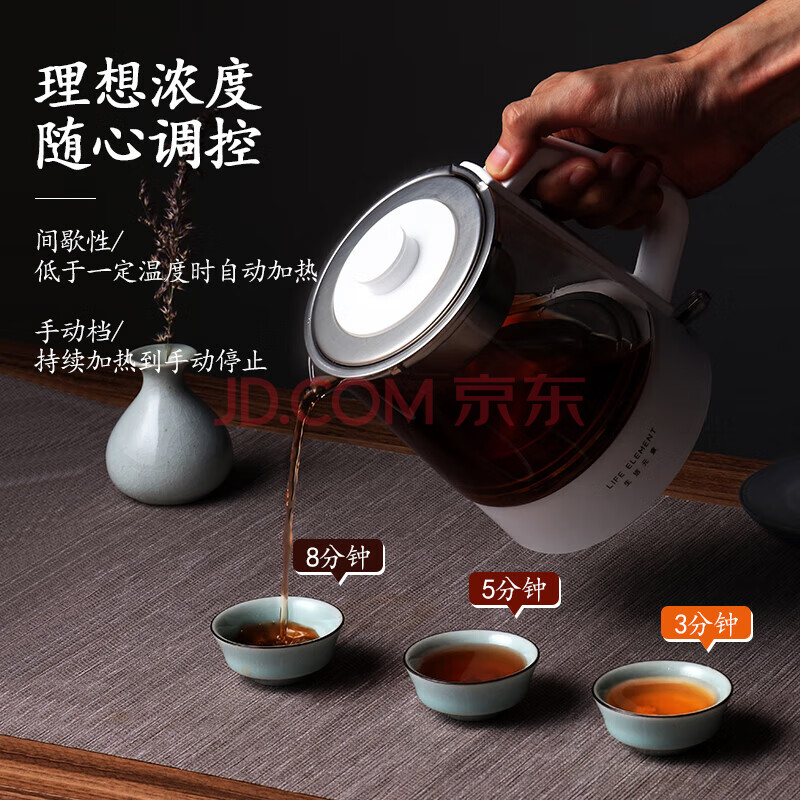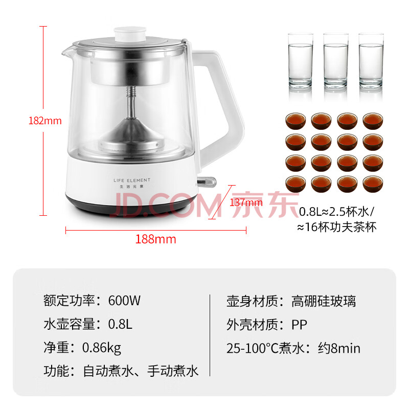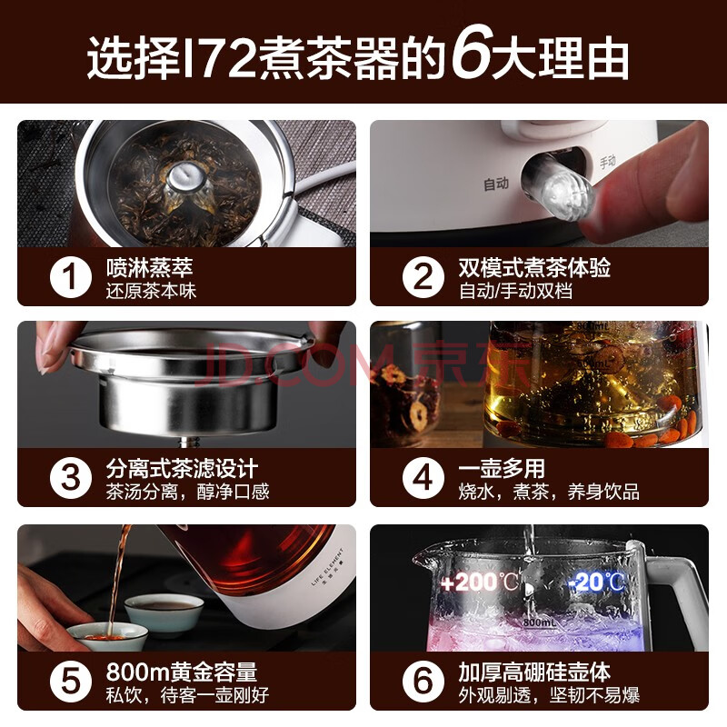 商品相册:生活元素(LIFE ELEMENT)养生壶 0.8L办公室迷你蒸汽喷淋式 自动/手动 双档煮茶壶 电热烧水壶 私享花茶壶 I72第1张/共6