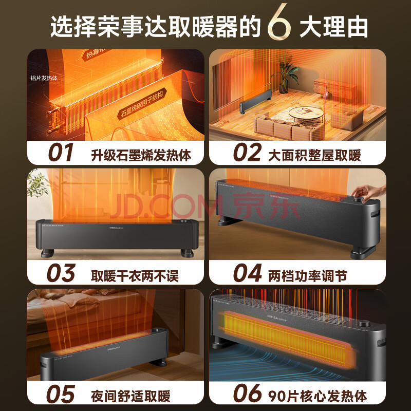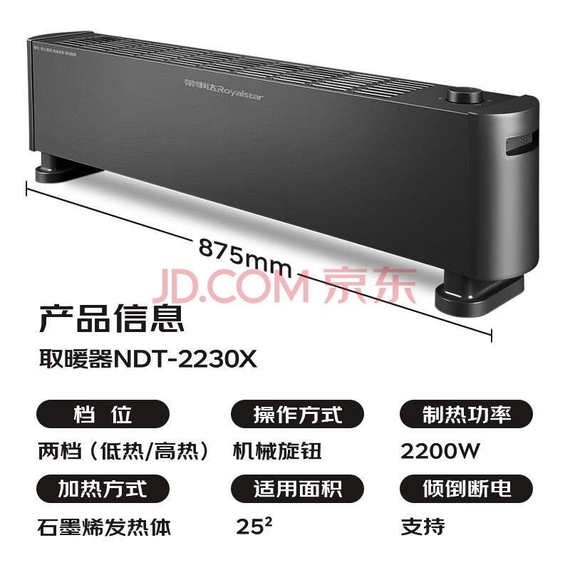 商品相册:荣事达(Royalstar)【电暖器热卖单品】石墨烯踢脚线电热取暖器家用电暖气大面积速热暖风机全屋升温地暖 NDT-2230X第1张/共9