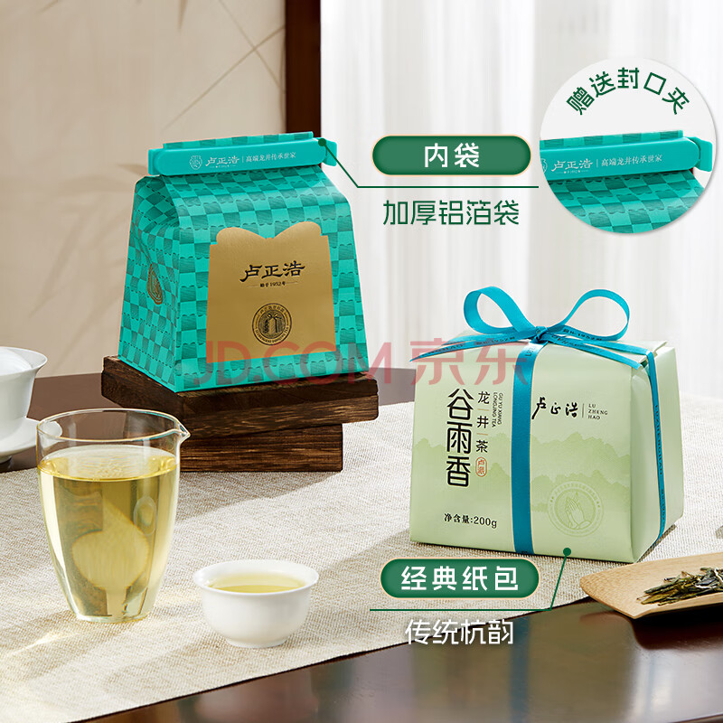 商品相册:卢正浩绿茶谷雨香龙井茶叶三级200g 2025茶叶雨前龙井纸包自饮源头直发第