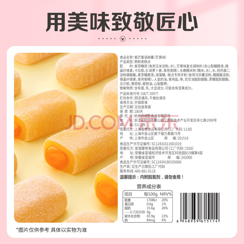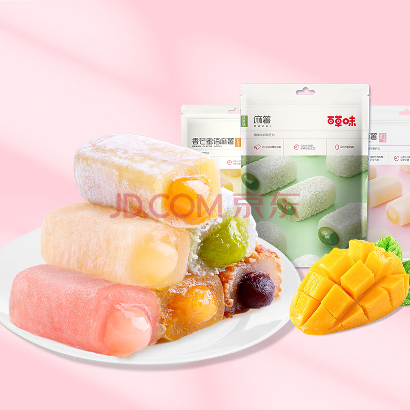 商品相册:百草味夹心麻薯芒果味210g/袋 台式点心饼干糕点休闲零食特产糯米滋 第