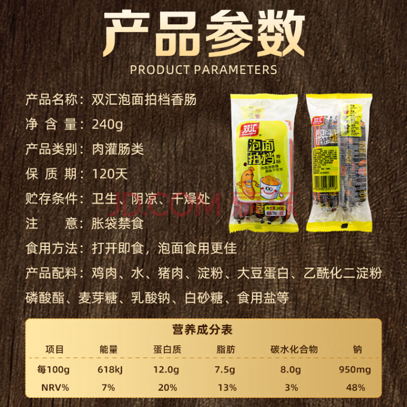 商品相册:双汇 火腿肠香肠 泡面拍档 30g*8支 休闲零食 即食火腿肠露营出游烧烤第