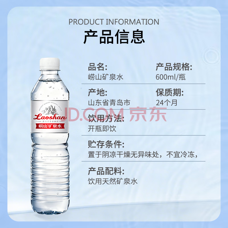 商品相册:崂山锶-偏硅酸型饮用天然矿泉水 会议家庭用水 600ml*24瓶 热门商品第