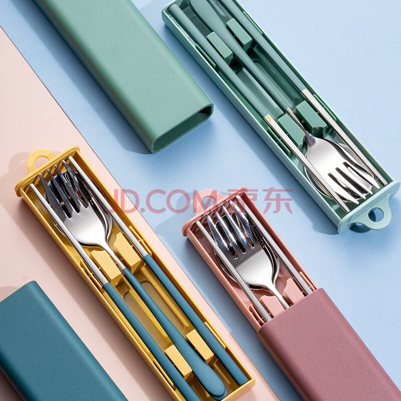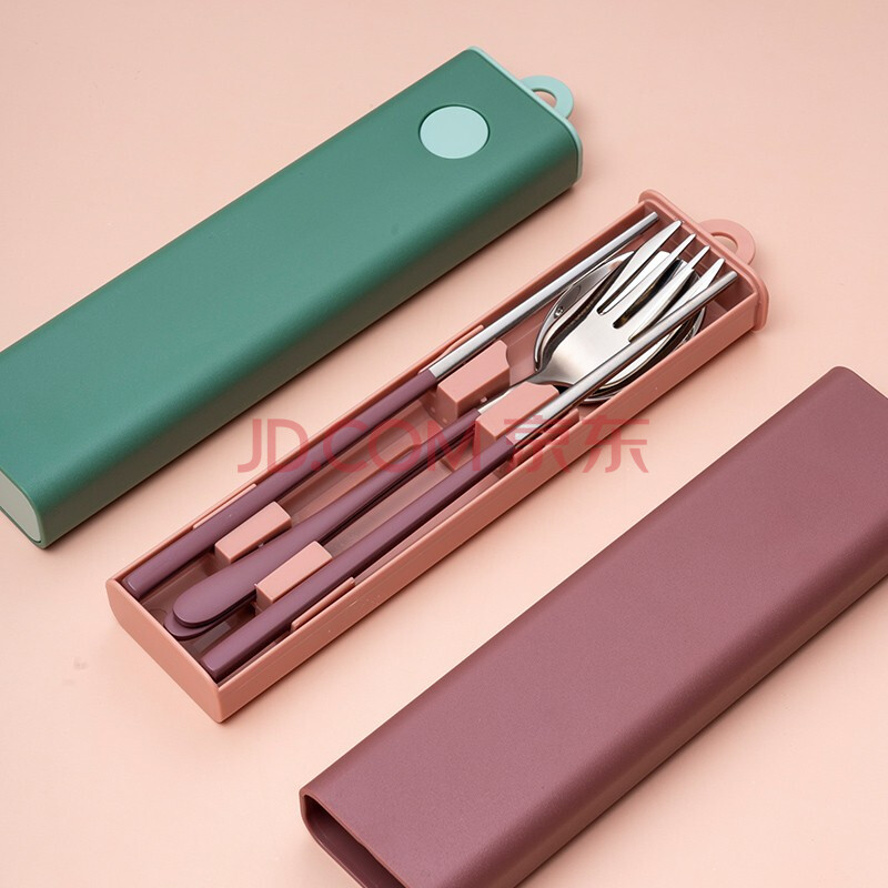 商品相册:onlycook 便携餐具筷子勺子304不锈钢两件套学生成人餐具套装 粉色三件套第