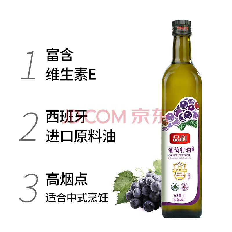 商品相册:品利葡萄籽食用油1L不饱和脂肪酸含量丰富粮油炒菜健身可用送礼第