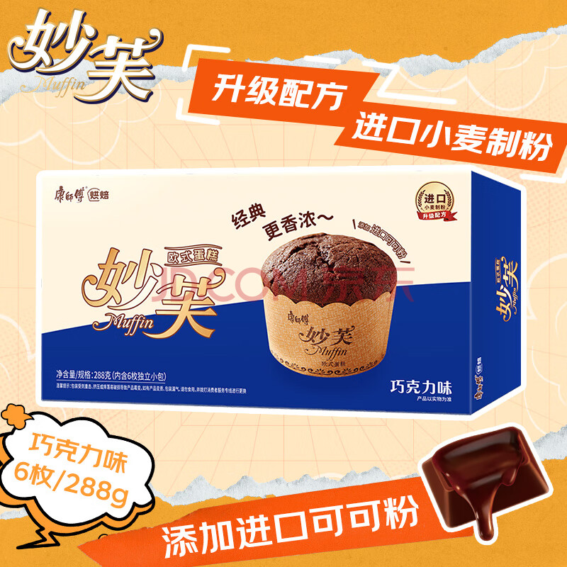 商品相册:康师傅 妙芙蛋糕 巧克力味288g 糕点点心饼干 早餐面包零食(包装随机)第