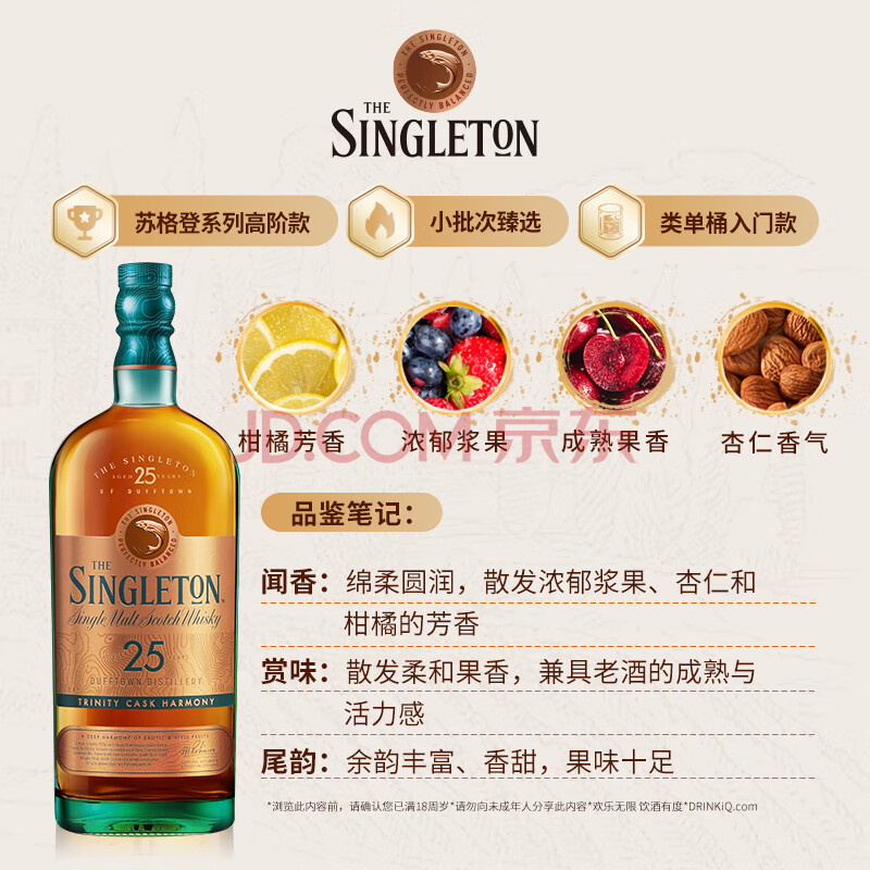 商品相册:苏格登(Singleton)25年 苏格兰单一麦芽威士忌 洋酒 700ml第