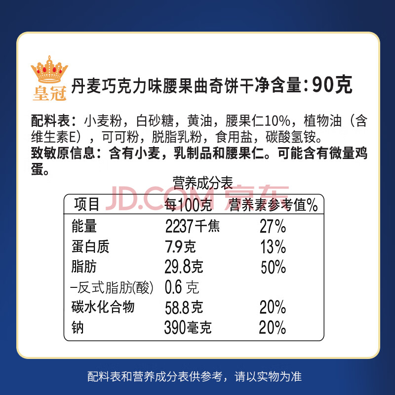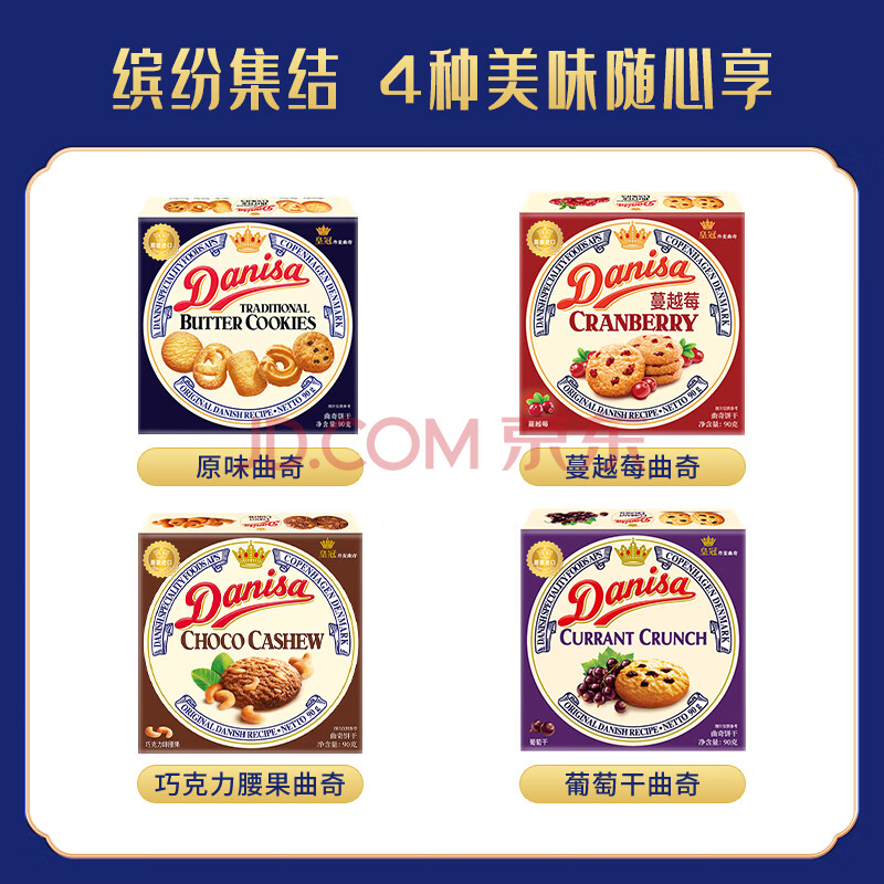 商品相册:皇冠(danisa)丹麦曲奇饼干巧克力味坚果90g 休闲零食早餐团购喜饼诞生礼进口第